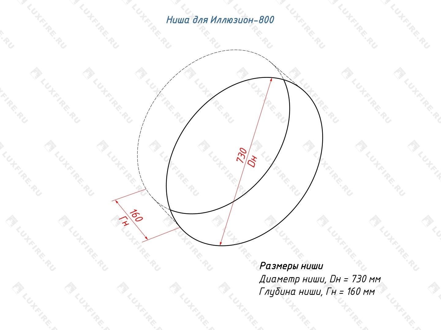 Представляет собой встраиваемую сборную сквозную металлическую конструкцию круглой формы класса S, создающую полузакрытое безопасное пространство для огня с топливным блоком Lux Fire 500 S ограниченную закаленным стеклом в котором горит живой огонь с углом обзора 180 градусов. Универсально подходит для встройки в нишу или подвеса на стену.