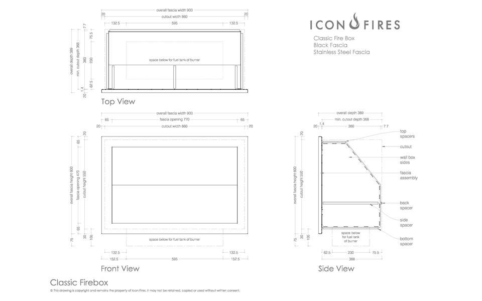 Встраиваемый биокамин Commercial CLASSIC FIREBOX BlackВстраиваемый биокамин CLASSIC FIREBOX с декоративной рамкой чёрного цвета комплектуется горелкой ICON FIRES Commercial LINEAR 614mm.